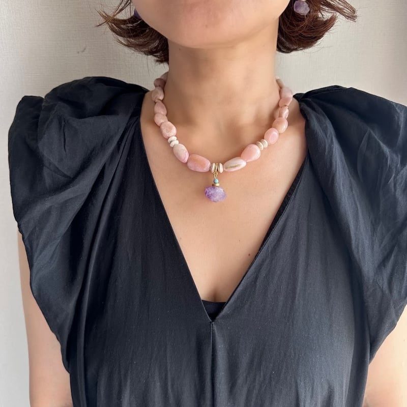 | メーカー | ☆ピンクアメジスト・ムーンストーン・マザーオブパールなどマクラメネックレス |