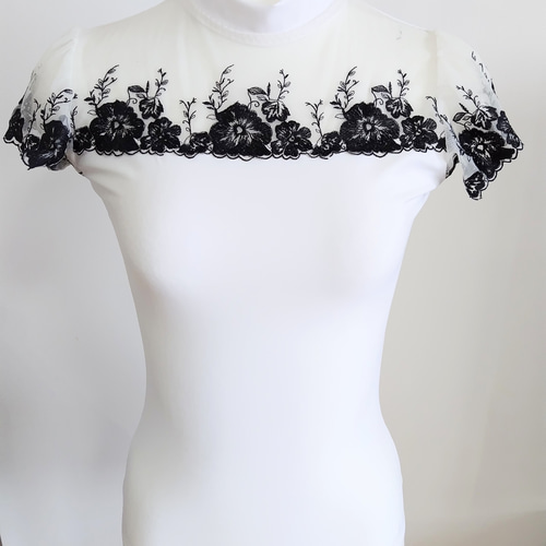 お申込番号:GNJVS664673075 /メーカー:白に黒の花レースが映えるタートルネック娘役レオタード S~Mサイズ /型番:7307568665 /JANコード:441070901 /アズワン/ナビス品番: