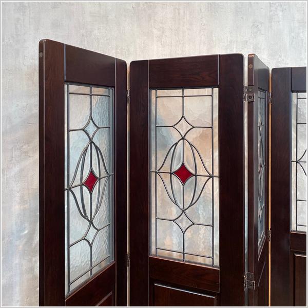 - 家具 > パーテーション・間仕切り > 最終値下げ 曙工芸製作所 高級ステンドスクリーン アンティークパーテーション4連 曙工芸製作所 パーテーション おしゃれ パーティション 4連 衝立