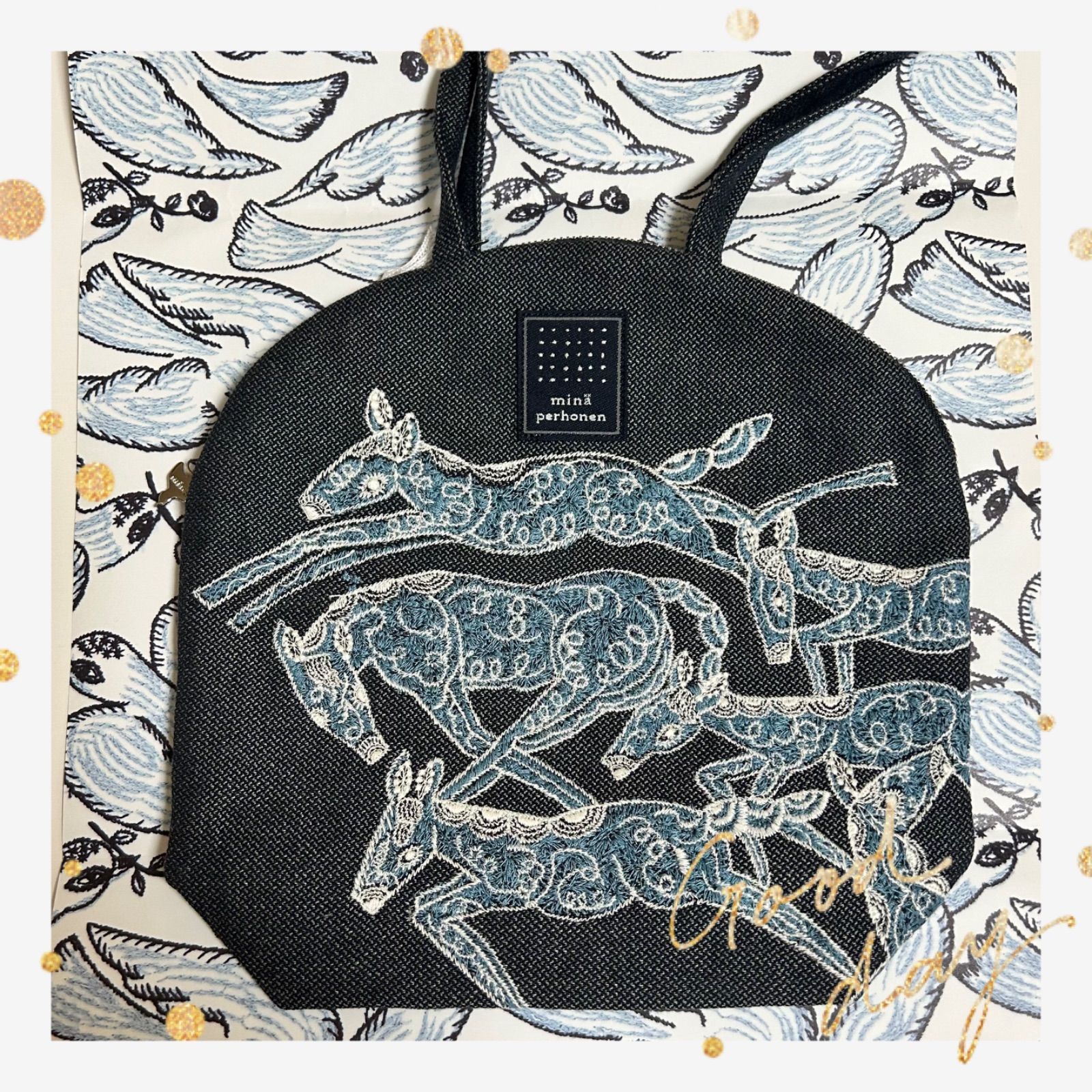 | 商品の特徴 | ミナペルホネン muffin bag マフィンバッグ papurikko ⚮ - メルカリ。ミナペルホネン muffin bag マフィンバッグ papurikko ⚮ - メルカリ。minä perhonen papurikko muffin bag color light blue、gray。2025年最新】ミナペルホネン バッグ マフィンバッグの人気。ミナペルホネンの完売のpapurikko のmuffin bagです★デニムのようなネイビー地に水色ブルーの馬さんの刺繍が可愛いです♡上辺 下辺 高さマチ巾 持ち手 31 16 23 6 59.5素材コットン55%、リネン45%、刺繍部分:コットン100%使ってくださる方、どうぞよろしくお願いします(❁ᴗ͈ˬᴗ͈) | ||